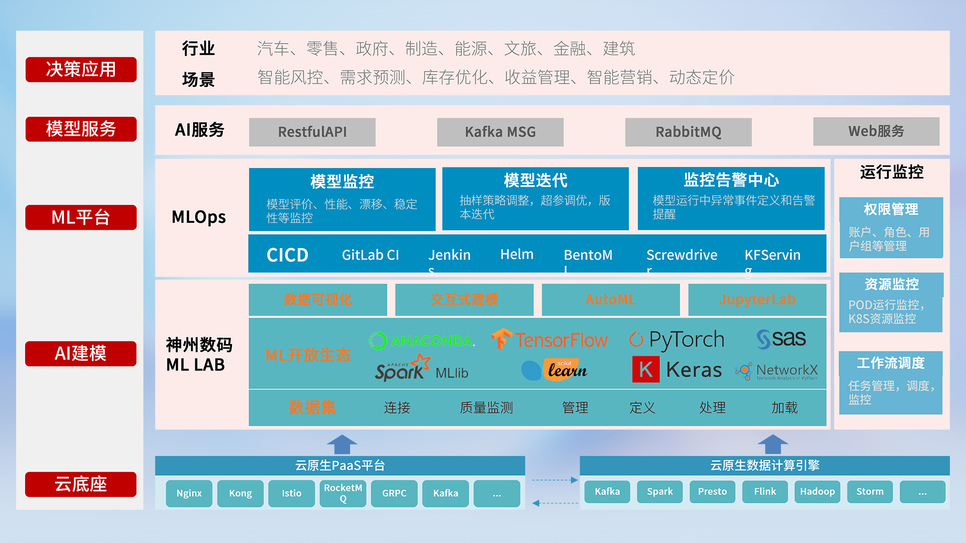 数据+模型双引擎驱动,,面向智能服务场景,,,快速灵活利用AI技术,,,,支持业务决策,,助力企业智能化转型破局。。